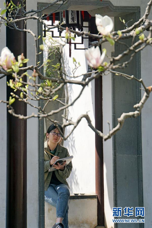 2019年4月1日,游客在中國(guó)蘇州網(wǎng)師園內(nèi)寫生。1997年,網(wǎng)師園和拙政園、留園、環(huán)秀山莊被列入聯(lián)合國(guó)教科文組織世界文化遺產(chǎn)名單。 新華社記者杜涓涓攝