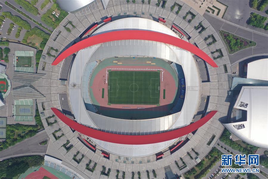 這是4月19日無人機拍攝的南京奧林匹克體育中心體育場。 新華社記者 李博 攝