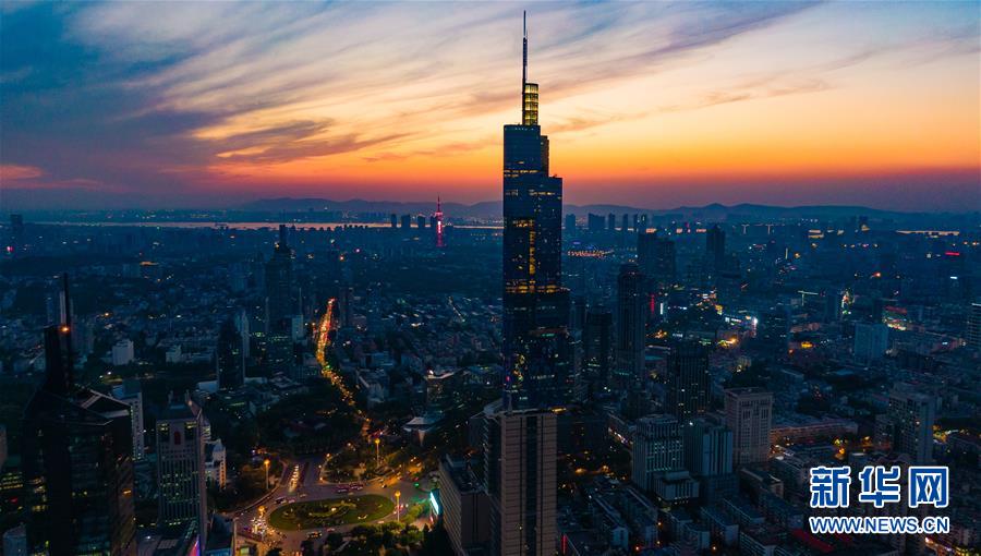 這是4月18日無人機拍攝的南京城市夜景。 新華社記者 李響 攝