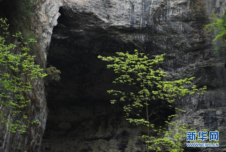地洞河天坑的巖洞(4月22日攝)。位于陜西省漢中市寧強(qiáng)縣的地洞河天坑,是禪家?guī)r天坑群中規(guī)模最大的一處天坑,坑內(nèi)分布有石鐘乳、石筍,具有極高的地質(zhì)研究?jī)r(jià)值。 新華社記者 張博文 攝