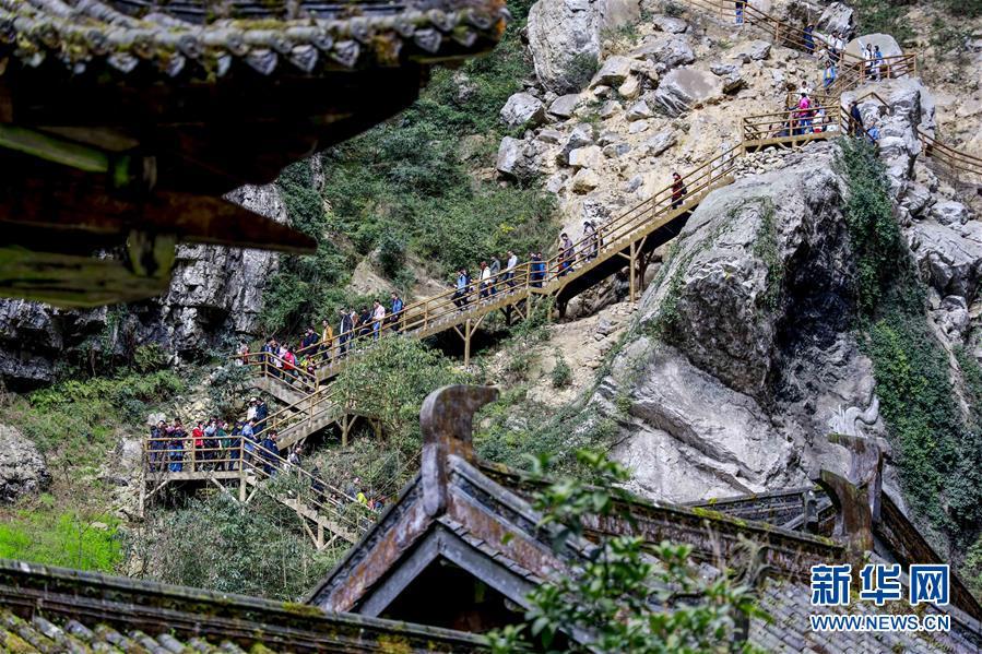 游客在天生三橋景區(qū)游覽(3月27日攝)。 隨著天氣轉(zhuǎn)暖,重慶武隆天生三橋景區(qū)風(fēng)景如畫,氣勢磅礴的天生石橋和綠意盎然的山林相映成趣,吸引眾多游客前來踏春賞景。 新華社記者劉潺攝