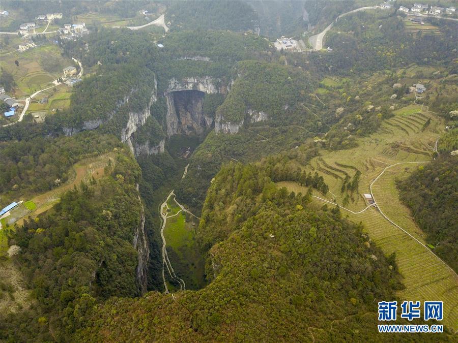 這是在天生三橋景區(qū)拍攝的神鷹天坑景觀(3月27日攝)。 隨著天氣轉(zhuǎn)暖,重慶武隆天生三橋景區(qū)風(fēng)景如畫,氣勢磅礴的天生石橋和綠意盎然的山林相映成趣,吸引眾多游客前來踏春賞景。 新華社記者劉潺攝