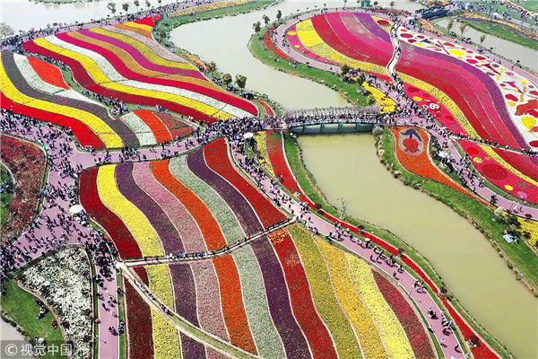 2019年4月6日,江蘇鹽城,大豐荷蘭花海景區(qū),人們在賞花游玩,盡享春光。