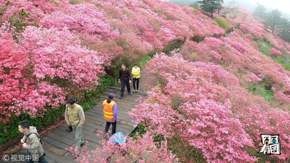 【湖北麻城杜鵑中國(guó)最大的古杜鵑原始群落】湖北麻城分布有100萬(wàn)畝古杜鵑,其中包括龜峰山風(fēng)景區(qū)的10萬(wàn)畝原生態(tài)古杜鵑群落。經(jīng)專(zhuān)家考證,其面積之大、年代之久、保存之好、密度之高、花色之美,堪稱(chēng)華中一絕,是迄今發(fā)現(xiàn)的我國(guó)最大的古杜鵑原始群落。其中,龜峰山“杜鵑花王”樹(shù)齡300多年,次生枝干達(dá)56枝,每枝干莖在6厘米至10厘米之間,樹(shù)冠冠莖達(dá)6米,覆蓋面積達(dá)35平方米,龜峰山古杜鵑群落2009年04月16日被收入上海大世界吉尼斯之最,以其面積之大、年代之久、密度之之高、保存之好、花色之美。