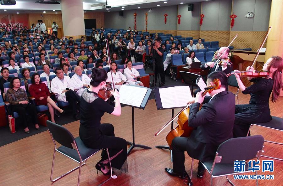 4月25日,上海交響樂團(tuán)的藝術(shù)家在復(fù)旦大學(xué)附屬腫瘤醫(yī)院為患者和醫(yī)護(hù)人員演奏。 當(dāng)日,第一場“全城交響·上交為你而來”音樂會在復(fù)旦大學(xué)附屬腫瘤醫(yī)院報(bào)告廳奏響,為患者及醫(yī)護(hù)人員獻(xiàn)上一場專屬音樂會?!叭墙豁憽ど辖粸槟愣鴣怼笔巧虾=豁憳穲F(tuán)2019年向全上海的機(jī)構(gòu)及個(gè)人開放的公益演出項(xiàng)目。 新華社記者 任瓏 攝