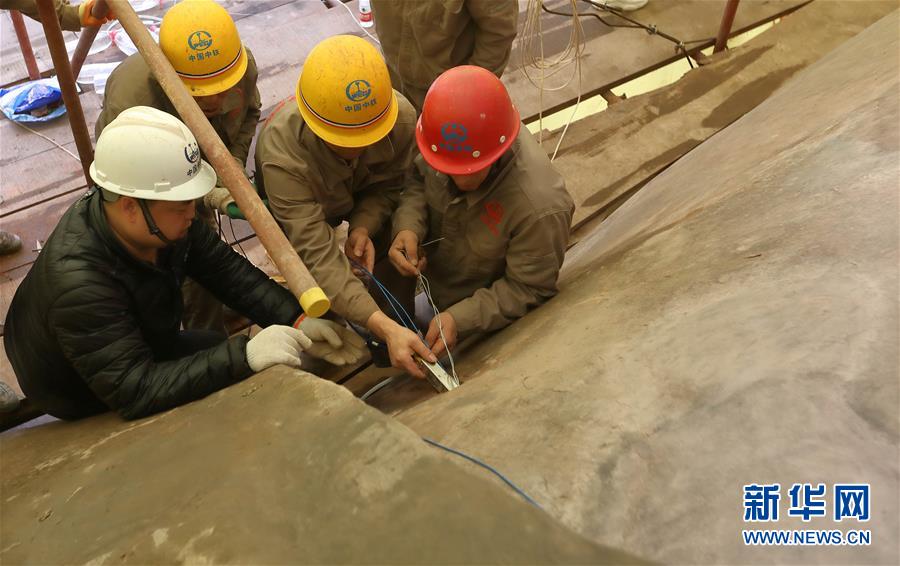 中鐵西北科學研究院有限公司文保中心的工作人員將勘測探頭放入大佛巖體內(3月17日攝)。