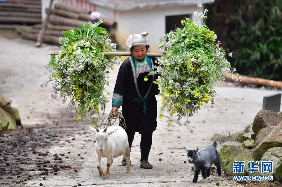 在黔桂烏英苗寨,村民勞作歸來(3月25日攝)。 新華社記者 黃孝邦 攝