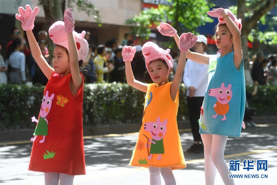 5月4日,扮演成“小豬佩奇”的演員在巡游隊伍中表演。當日,第十五屆中國國際動漫節(jié)彩車巡游活動在浙江杭州南宋御街中北創(chuàng)意街區(qū)舉行。巡游表演隊伍約500米長,由4輛大型動漫彩車、1輛小火車及400多名演員組成。新華社記者 黃宗治 攝