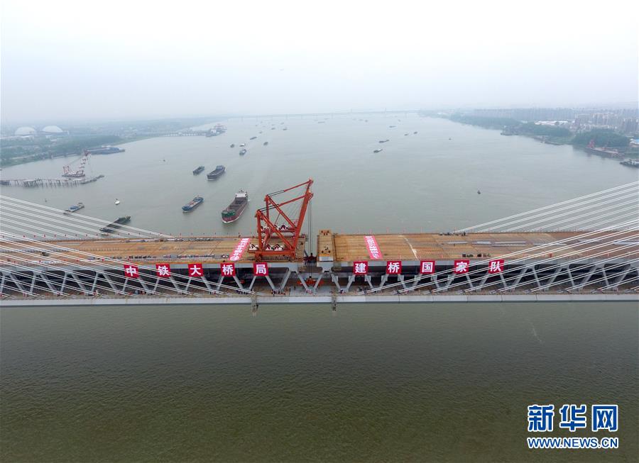 這是合龍后的商合杭鐵路蕪湖長江公鐵大橋(4月26日無人機拍攝)。