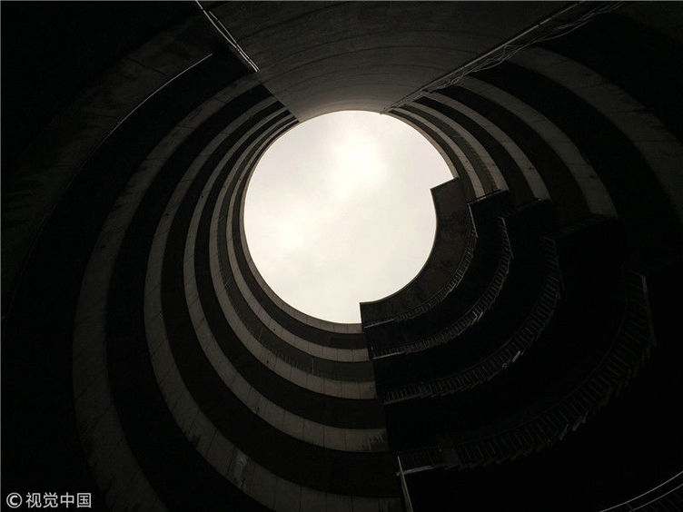 2018年12月11日,重慶紅旗河溝汽車站辦公大樓。八層的圓筒型轉(zhuǎn)轉(zhuǎn)樓,站在樓里往上望,可以看見碗口大的天空。圖片作者:尋常