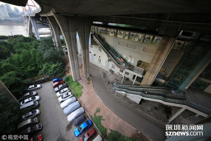 深圳新聞網(wǎng)訊 2018年5月29日,重慶,魔幻重慶又雙叒叕放大招!還有一個(gè)獨(dú)特的亮點(diǎn),重慶軌道交通3號(hào)線銅元局站,出口由一段長梯銜接上方立交橋和下方的路面,與全國最高城市立交橋蘇家壩立交組成了獨(dú)特風(fēng)景,許多游客專門趕來拍照。