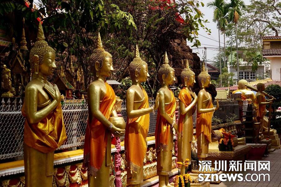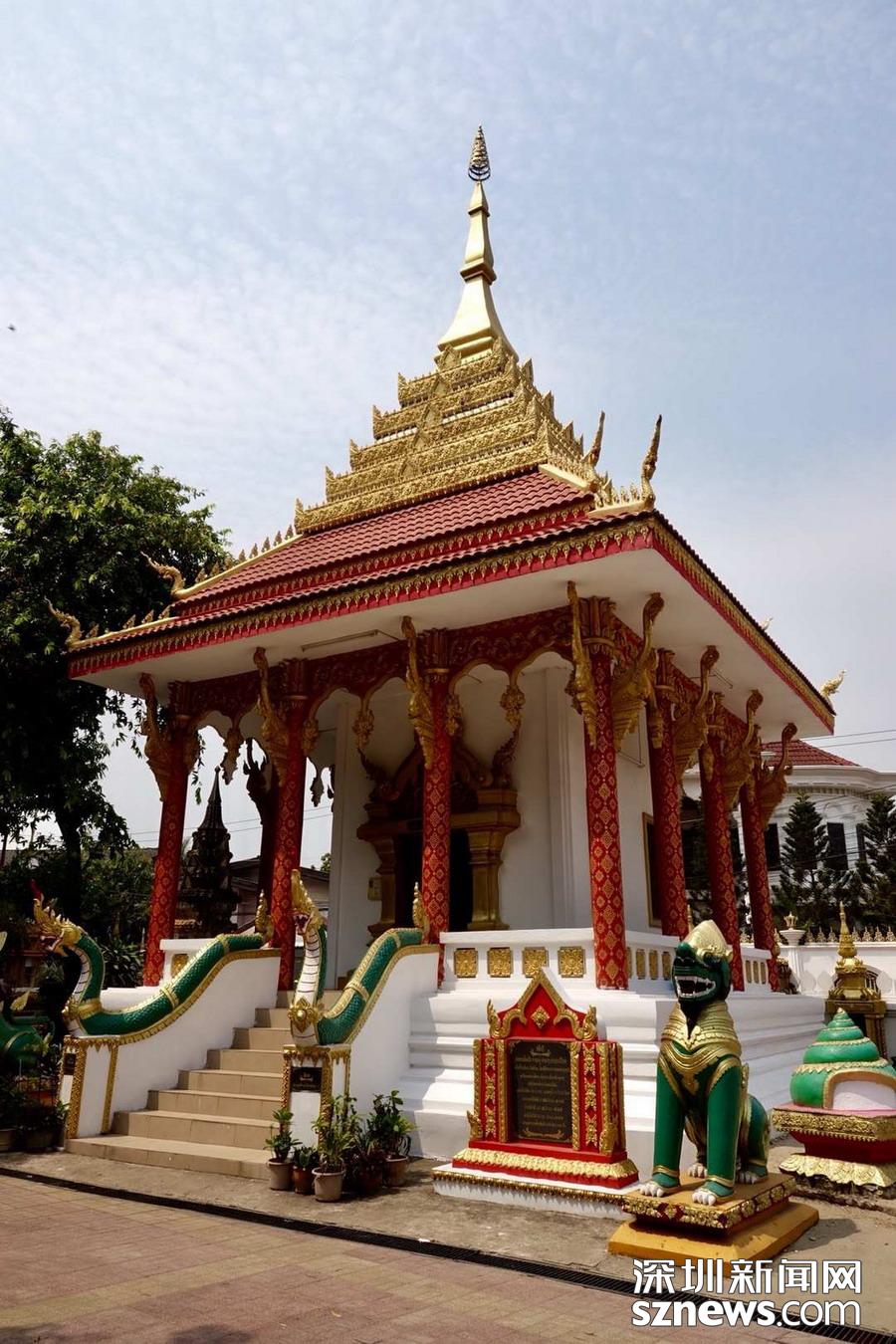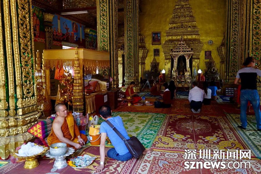 西蒙寺是萬(wàn)象香火最旺盛的一個(gè)寺廟,又稱神城寺,每天有很多當(dāng)?shù)厝思坝慰蛠?lái)這里祈福,尤其受泰國(guó)游客鐘愛(ài)。李仁奇 攝