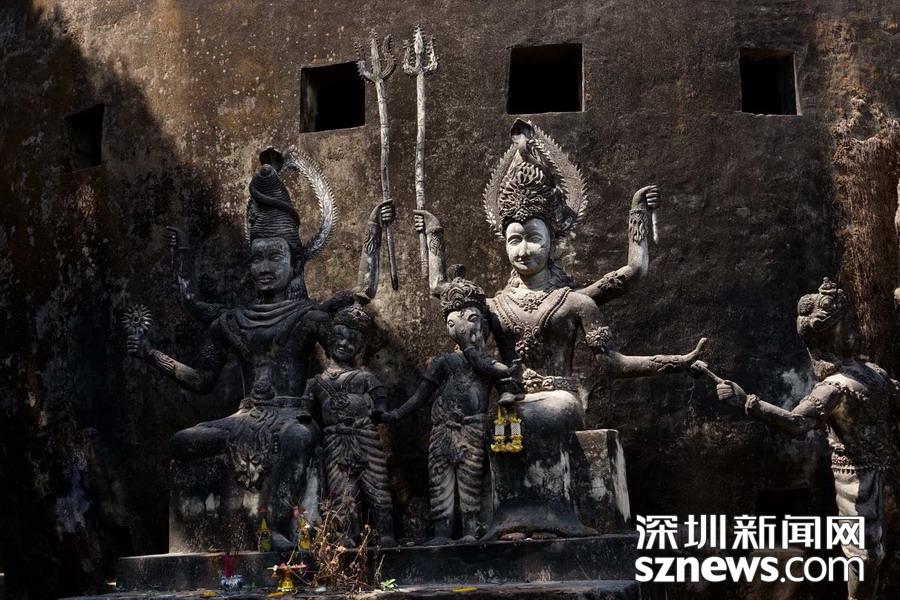香昆寺實(shí)際上是一座佛像公園,位于萬(wàn)象東南約 24 公里處,寺內(nèi)供奉的各種超凡脫俗的佛像和印度教雕像大多取材于宗教故事。圓形尖塔、塔頂有一座金佛坐鎮(zhèn)的詭異建筑寓意著地獄、人間和天堂。 李仁奇 攝