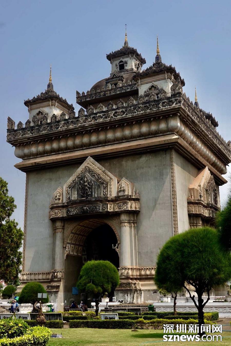 凱旋門位于市中心,為紀(jì)念老撾人民頑強(qiáng)抵抗外敵入侵而建,門高45米,寬24米,遠(yuǎn)觀和法國(guó)巴黎的凱旋門相似,但上部是典型的老撾風(fēng)格,拱門基座上的雕刻很精美。站在它的頂部能夠一覽周邊的政府建筑和整個(gè)城市的風(fēng)貌。李仁奇 攝