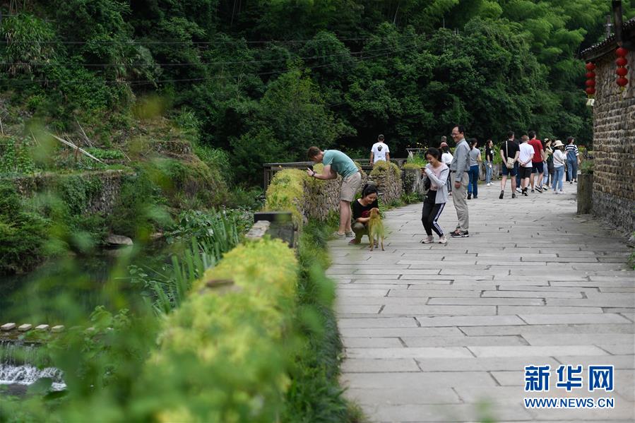 游客在石舍村游覽(5月25日攝)。 石舍村是浙江省桐廬縣富春江鄉(xiāng)村慢生活體驗(yàn)區(qū)中的三個(gè)村落之一,位置偏僻,依溪而居,風(fēng)景秀美。近年來(lái),石舍村結(jié)合古建筑保護(hù)工作,在清潔、美化村莊的基礎(chǔ)上,對(duì)一些廢棄古建筑進(jìn)行修繕,引入咖啡館、民宿等文化創(chuàng)意類項(xiàng)目,優(yōu)良的生態(tài)環(huán)境和濃郁的文化氛圍吸引大批游客前來(lái)體驗(yàn),小山村走上了一條發(fā)展美麗經(jīng)濟(jì)之路。2018年,石舍村接待游客10萬(wàn)8千余人次,旅游經(jīng)營(yíng)凈收入1260余萬(wàn)元。 新華社記者 黃宗治 攝