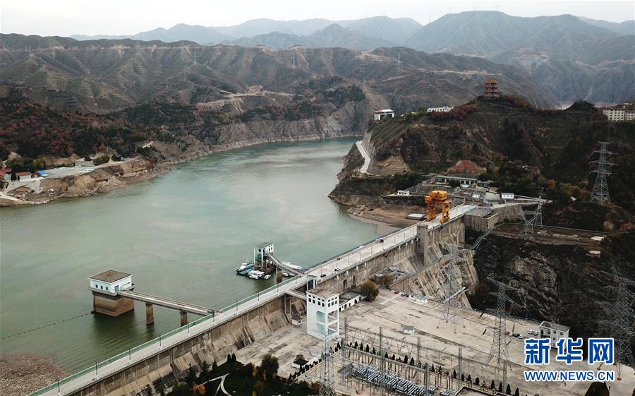 這是10月24日無人機(jī)拍攝的劉家峽水庫庫區(qū)和水庫大壩。 新華社記者 陳斌 攝