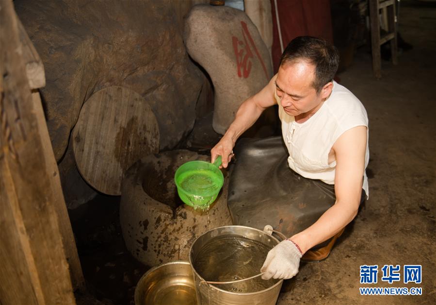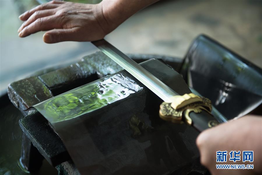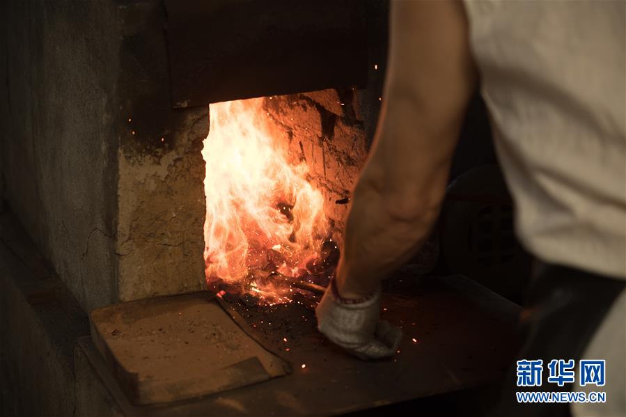5月21日,鄭國榮在“古越劍鋪”打井水準(zhǔn)備為寶劍淬火。他說淬火用的水很重要,正是看中了這口井他才把工作室設(shè)在這里。 新華社記者 翁忻旸 攝