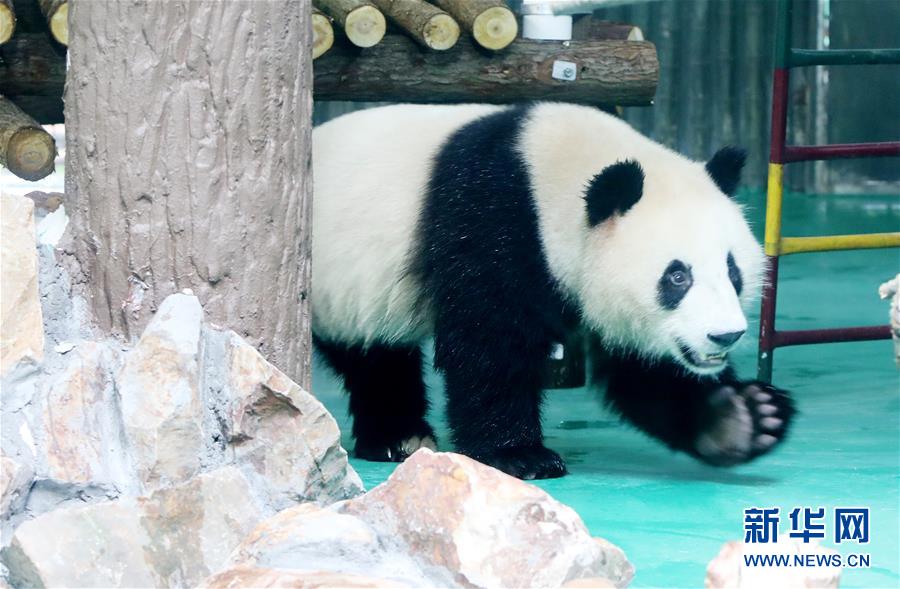 6月18日,大熊貓“和風(fēng)”在裝修一新的大熊貓館內(nèi)散步。 當(dāng)日,來自四川的大熊貓兄弟“和風(fēng)”與“星光”飛抵上海,正式開始了在上海動物園為期三年的生活。為迎接這對“風(fēng)光兄弟”,上海動物園將原有的大熊貓館擴(kuò)建并裝修一新,空調(diào)、水池、游樂場以及竹葉儲存間等配置齊全。 新華社記者 方喆 攝