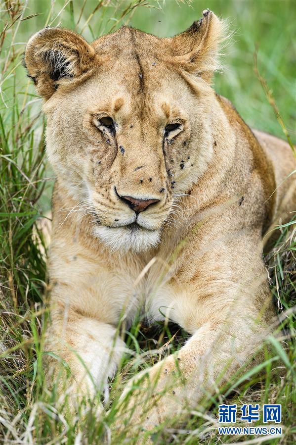 6月17日,在肯尼亞馬賽馬拉國家保護區(qū),一頭獅子在草叢中休息。 新華社記者 李琰 攝