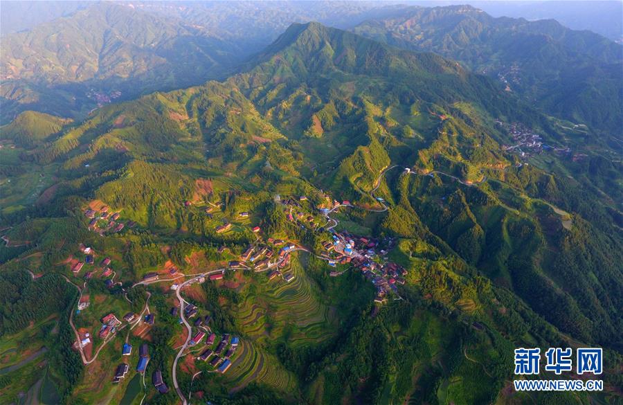 這是融水苗族自治縣桿洞鄉(xiāng)黨鳩村的村屯公路(6月18日無人機拍攝)。