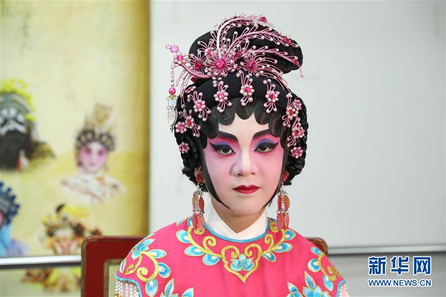 粵劇小演員陸瑞徽在準(zhǔn)備折子戲《艷曲醉周郎》的表演(6月8日攝)。 聲輝粵劇推廣協(xié)會(huì)成立于2003年,是香港重要粵劇藝術(shù)團(tuán)體之一,致力于向青少年推廣粵劇。協(xié)會(huì)目前有兩個(gè)初班,3個(gè)中班,一個(gè)青少年班?;泟∮址Q“廣東大戲”,表演技藝包括“唱做念打”,即唱功、身段、臺(tái)詞、武打,主要流行于廣東、廣西和香港、澳門等地區(qū)。2009年,粵劇被列入聯(lián)合國(guó)教科文組織人類非物質(zhì)文化遺產(chǎn)代表作名錄,今年正逢十周年。 新華社記者 吳曉初 攝