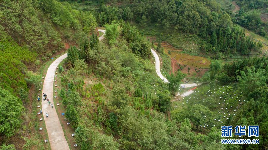 云南省西盟縣勐梭鎮(zhèn)班母村中華蜂養(yǎng)殖基地一景(6月16日無人機(jī)拍攝)。 新華社記者 胡超 攝
