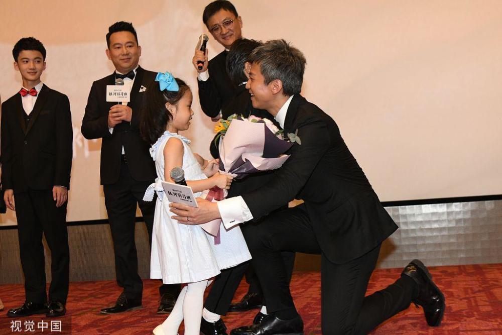 2019年7月11日,上海,鄧超新片《銀河補(bǔ)習(xí)班》上海首映,孫儷帶著等等、小花前來助陣,現(xiàn)場的鄧超一看就是個(gè)女兒奴,在現(xiàn)場和目光都不離開小花,又是親親抱抱,又是單膝跪地安撫,十足疼愛這位前世小情人。