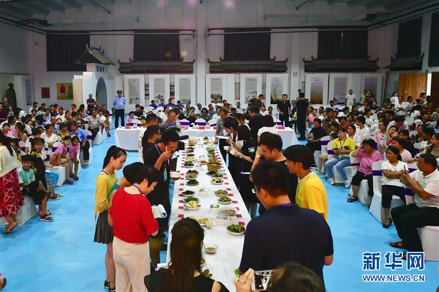 這是8月3日在河南省鶴壁市淇濱區(qū)鉅橋鎮(zhèn)崗坡村拍攝的鄉(xiāng)村美食文化大賽總決賽現(xiàn)場。新華社記者馮大鵬攝