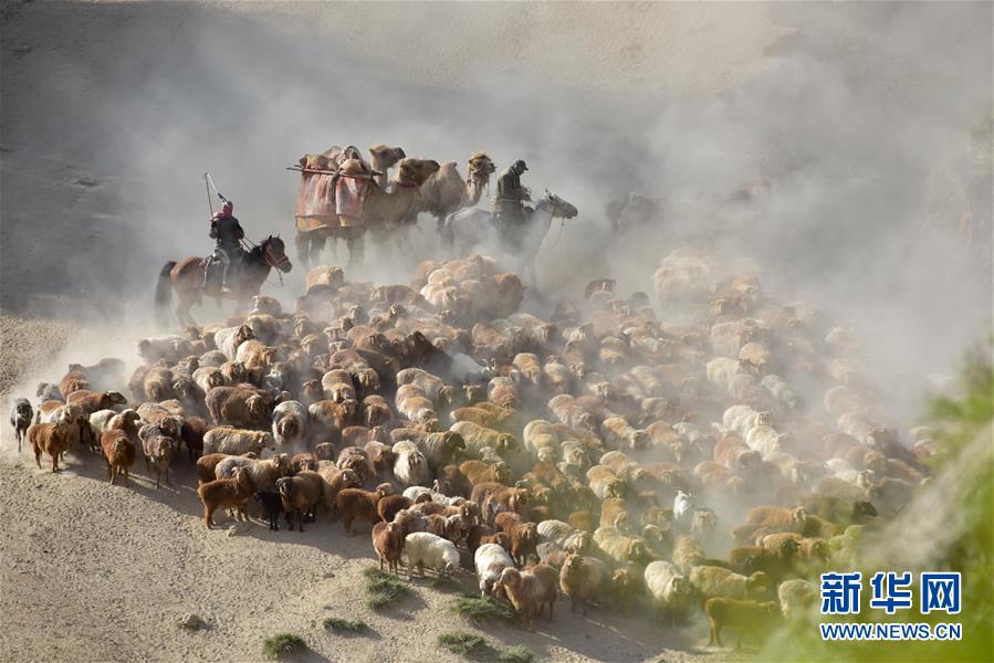 6月6日,新疆阿勒泰地區(qū)福??h牧民趕著牲畜向夏季牧場遷徙。 新華社記者 丁磊 攝