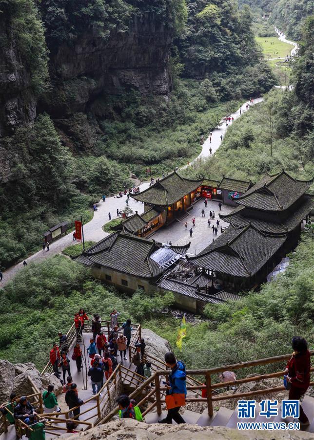 游客在天生三橋景區(qū)游覽(3月27日攝)。 隨著天氣轉(zhuǎn)暖,重慶武隆天生三橋景區(qū)風(fēng)景如畫,氣勢(shì)磅礴的天生石橋和綠意盎然的山林相映成趣,吸引眾多游客前來踏春賞景。 新華社記者劉潺攝