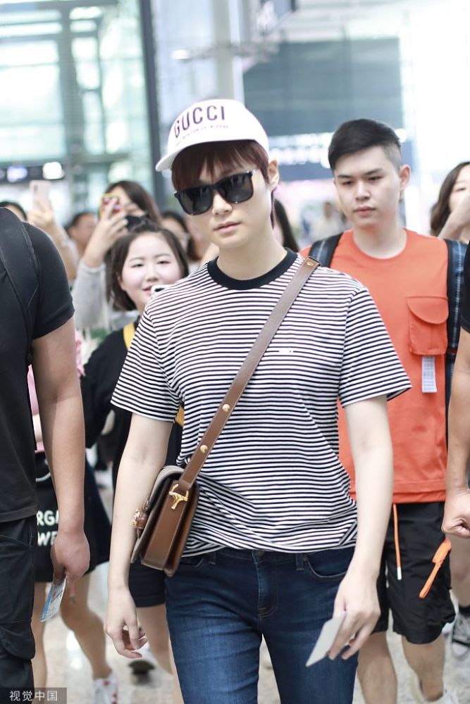 李宇春條紋裝扮現(xiàn)身機場,青春活力,人氣爆棚