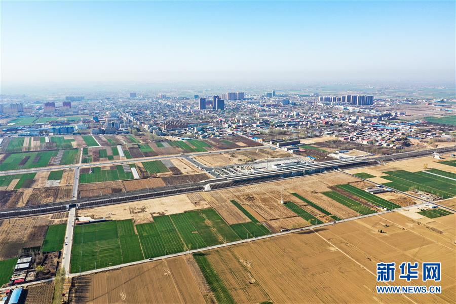 這是京雄城際鐵路施工現(xiàn)場(chǎng)(3月21日無(wú)人機(jī)拍攝)。新華社記者牟宇攝