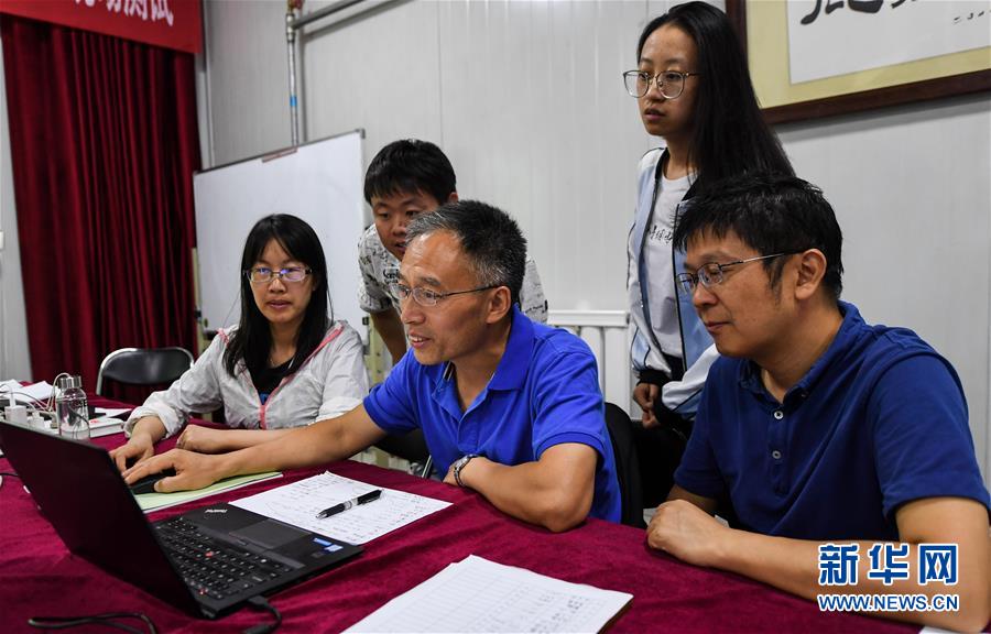 在明安圖觀測(cè)基地,科研人員進(jìn)行研討(7月27日攝)。 新華社記者 劉磊 攝