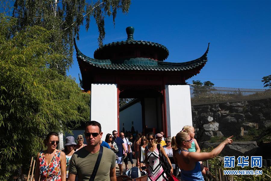 8月24日,在比利時(shí)布呂熱萊特市,游客參觀天堂動(dòng)物園的“中國(guó)園”。新華社記者鄭煥松攝