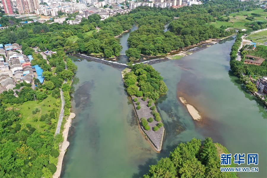 這是6月30日無人機(jī)拍攝的廣西興安縣靈渠。 位于廣西興安縣的靈渠是世界上保存最完整的古代水利工程之一,至今仍發(fā)揮著農(nóng)田灌溉、排洪泄洪作用。2018年,靈渠入選世界灌溉工程遺產(chǎn)名錄。 新華社記者 周華 攝
