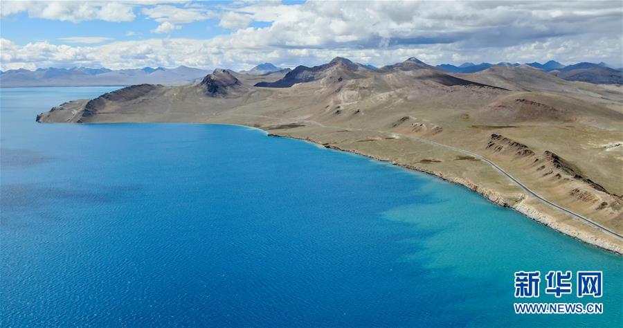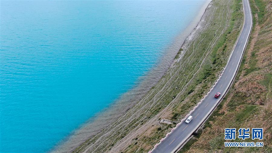 普姆雍錯(cuò)湖緊挨著公路,是自駕游的理想目的地(9月19日無人機(jī)拍攝)。新華社記者晉美多吉攝