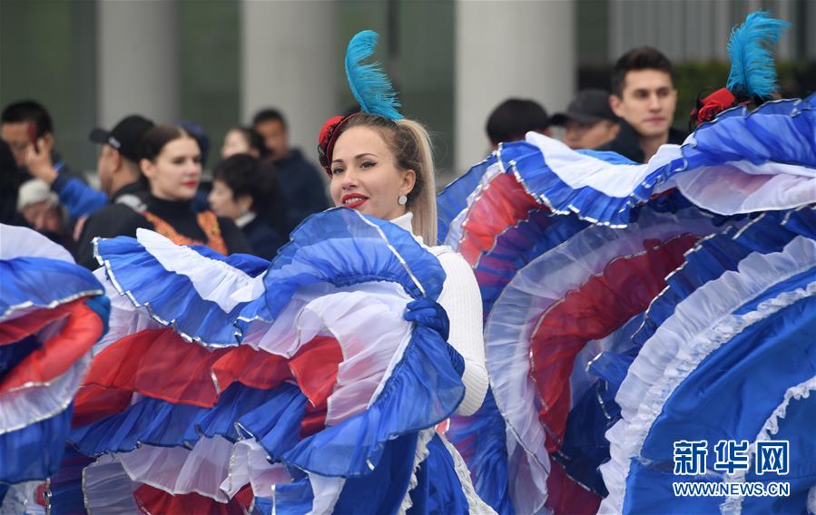 演員在北京世園會園區(qū)表演(4月29日攝)。新華社記者 李欣 攝