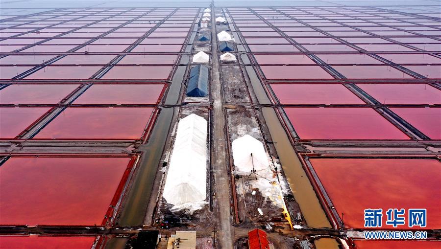 這是進(jìn)入收獲季節(jié)的魯北鹽場(10月9日無人機(jī)拍攝)。新華社記者 朱崢 攝