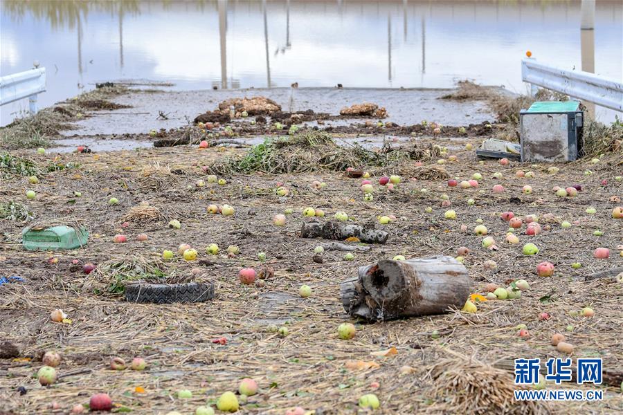 10月14日,在日本長野市,千曲川決堤后,水流侵襲了附近的蘋果樹。受縱貫東日本強臺風“海貝思”帶來的強降雨影響,日本多地暴發(fā)洪災,已造成33人死亡、19人失蹤。據(jù)日本共同社13日統(tǒng)計,“海貝思”過境導致日本多處河流泛濫,目前有21條河流決堤24處。其中,流經(jīng)長野縣的千曲川決堤,造成長野市和千曲市大范圍被淹,大片住宅區(qū)被洪水包圍,有的房屋甚至被淹至2層。新華社記者華義攝