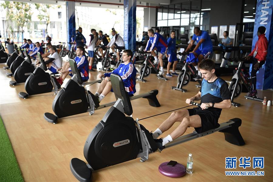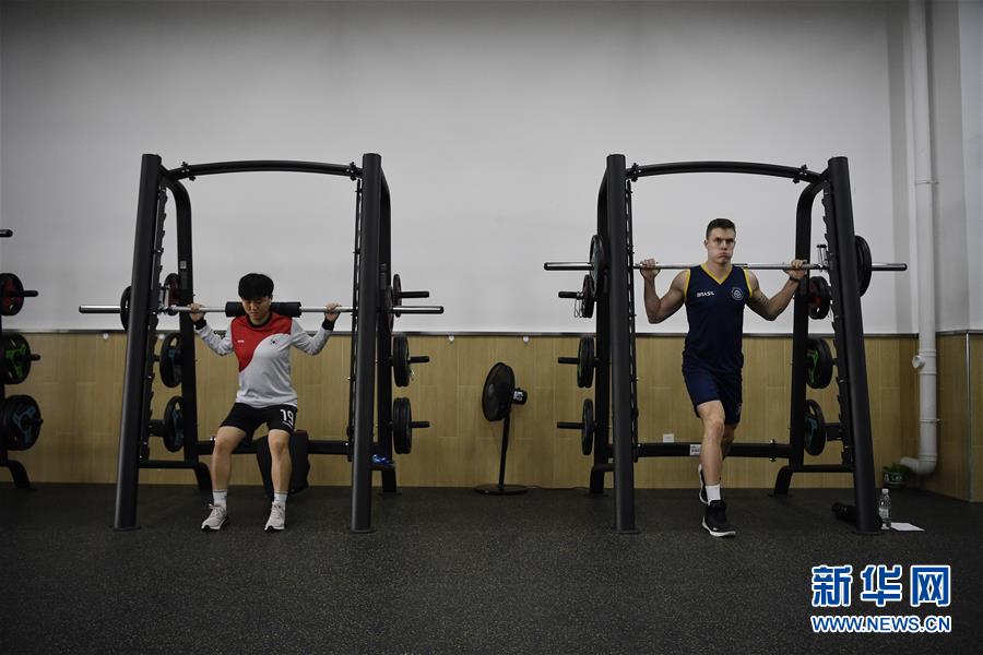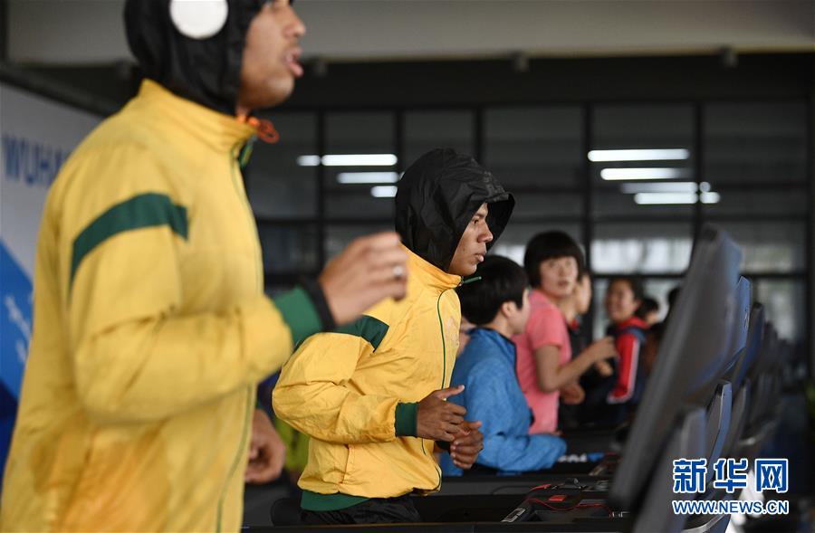 10月16日,運動員在軍運村內的健身中心鍛煉。新華社記者王鵬攝