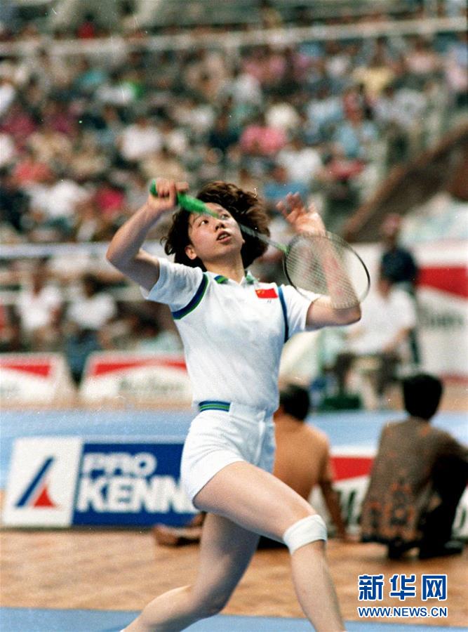圖為韓愛(ài)萍在吉隆坡舉行的世界羽毛球男女團(tuán)體錦標(biāo)賽中舉拍回?fù)鯇?duì)方的擊球(資料照片),最終中國(guó)隊(duì)奪得女子團(tuán)體冠軍。新華社記者黃景達(dá)攝