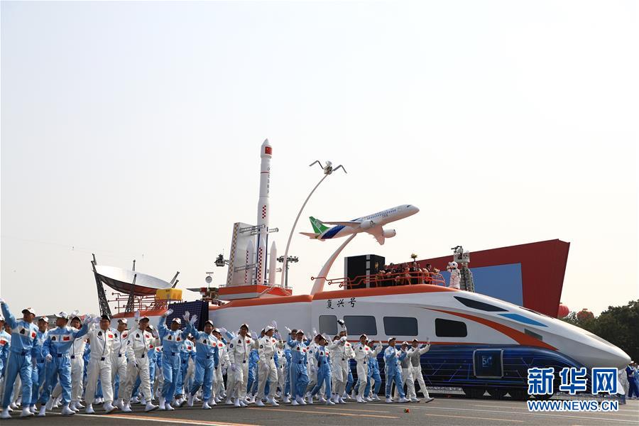 10月1日上午,慶祝中華人民共和國成立70周年大會(huì)在北京天安門廣場隆重舉行。這是“創(chuàng)新驅(qū)動(dòng)”方陣。 新華社記者 劉續(xù) 攝