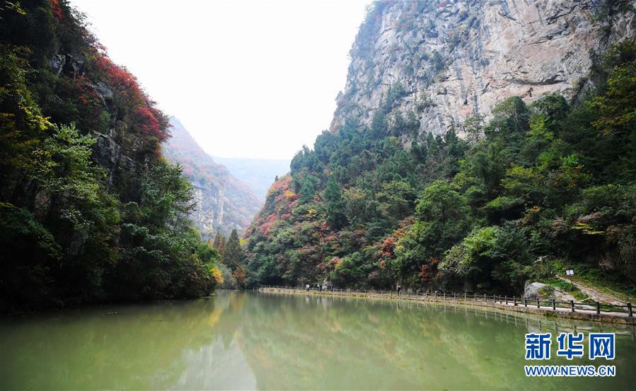 金秋時(shí)節(jié),甘肅省隴南市成縣西狹頌景區(qū)層林盡染,峽內(nèi)石崖、池潭、樹(shù)木、山峰構(gòu)成五彩斑斕的秋日美景圖,引人入勝。