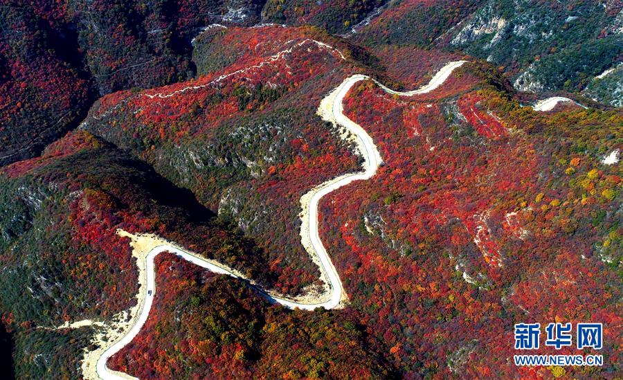 這是10月19日無(wú)人機(jī)拍攝的河北省涉縣太行紅葉大峽谷景色。金秋十月,河北省涉縣偏城鎮(zhèn)太行紅葉大峽谷的紅葉進(jìn)入觀賞佳期,吸引眾多游客前來(lái)登山賞景。新華社記者王曉攝