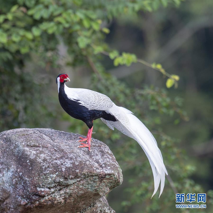 一只白鷴在福建省南靖縣鵝仙洞自然保護(hù)區(qū)一處巖石上停歇(10月20日攝)。