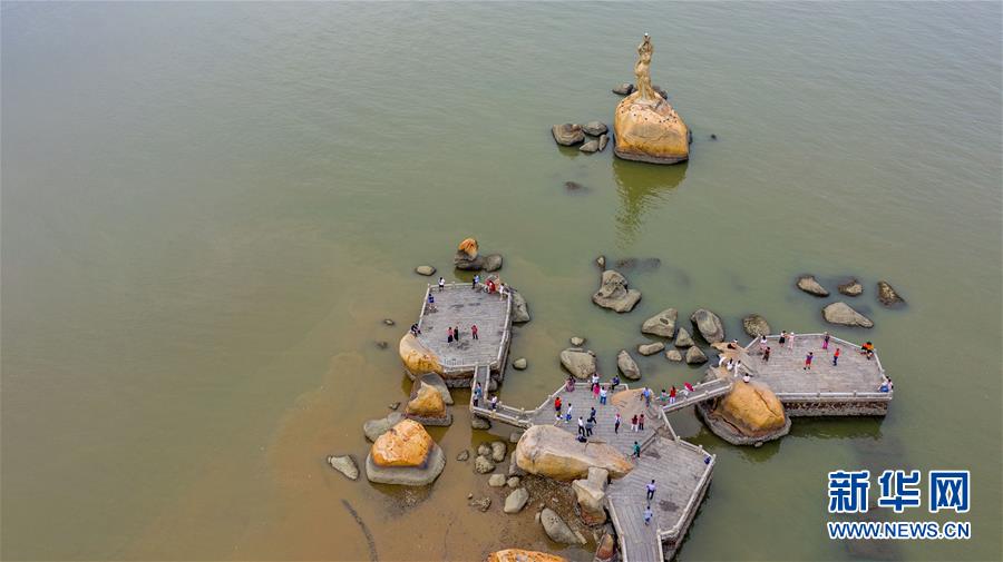 10月24日下午無(wú)人機(jī)拍攝的珠海標(biāo)志性景觀——珠海漁女。2018年10月23日,港珠澳大橋正式開通。新華社記者張金加攝