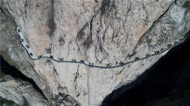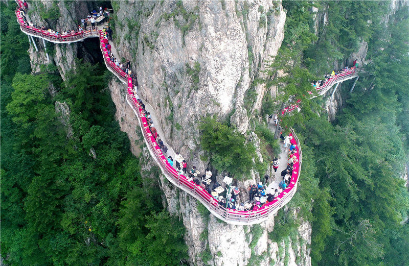 摩肩接踵腳踩深淵 懸空棧道也可以這么玩