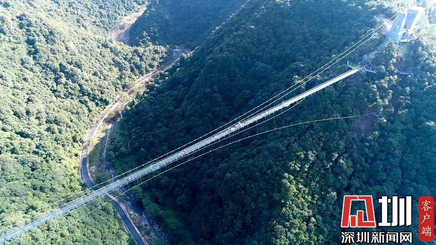 2019年8月24日,說到“玻璃天橋”,恐高的人雙腳發(fā)抖,膽大的人躍躍欲試,在國內的湖南張家界、福建三明尤溪、河南嵩山三皇寨等地,已經出現了不少與自然景觀、人文歷史融為一體的玻璃天橋,讓游客們大呼過癮?,F在,浙江臺州人可以就近去三門過一把“行走在云端”的癮了。今年夏天,全長419米、垂直高度199米玻璃景觀懸索橋,出現在臺州三門潘家小鎮(zhèn)情人谷,刺激程度絕不亞于張家界玻璃橋。這座橋橫跨牛郎峰、織女峰之間,可將潘家小鎮(zhèn)的美麗風景盡收眼底。圖為航拍玻璃天橋。