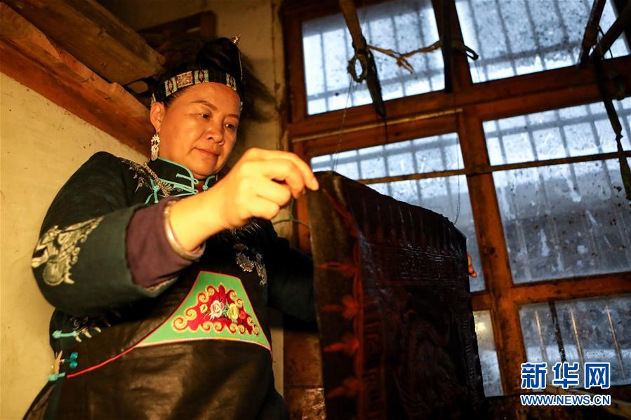 10月28日,楊芳在家中對繪好的蠟畫進行染制。新華社記者 歐東衢 攝