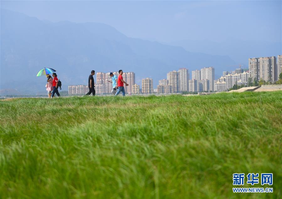 10月9日,江西省廬山市,游客行走在鄱陽(yáng)湖湖區(qū)干涸的湖面上。新華社記者胡晨歡攝